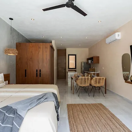 Tulum şehrinin ziyaretçileri Stylish Studio With Pool Terrace dairesinden memnun kalacaklar. Bu 1 yatak odalı konaklama yerinde donanımlı mini mutfak ve 1 banyo odası da mevcuttur.
